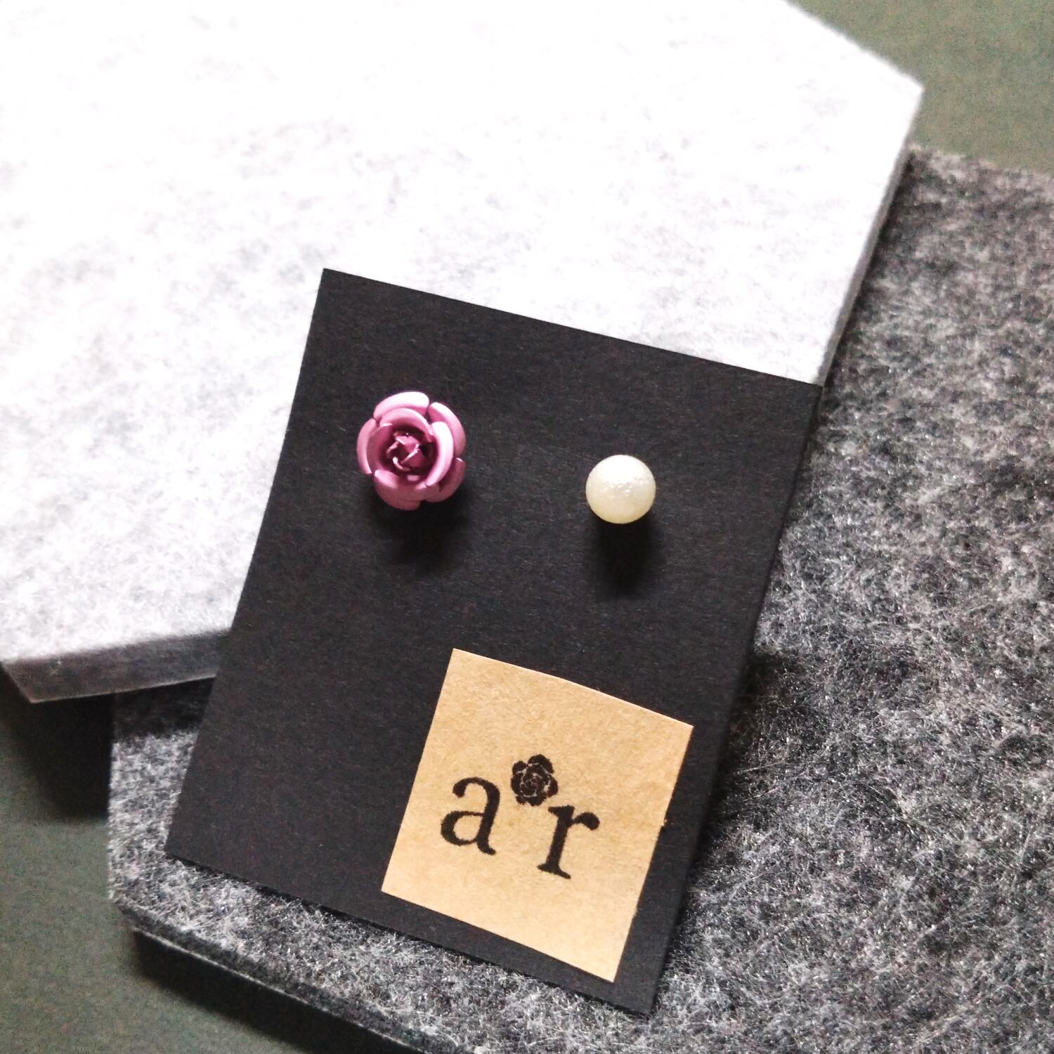 【ピアス】オールドローズとシュガーパール